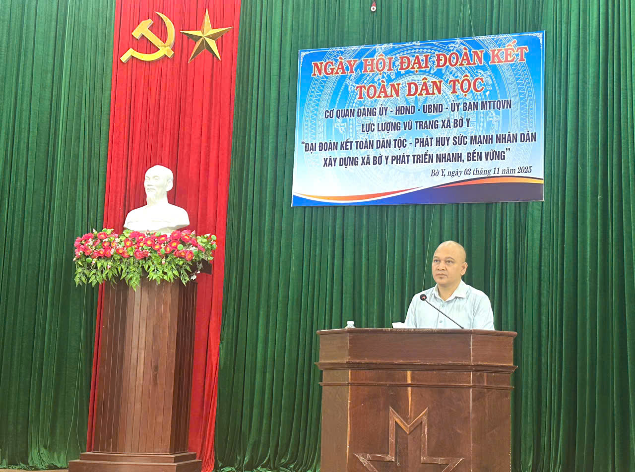 Sáng 03/11, xã Bờ Y đã tổ chức Ngày hội Đại đoàn kết toàn dân tộc năm 2025 và hướng đến kỷ niệm 95 năm Ngày truyền thống Mặt trận Tổ quốc Việt Nam (18/11/1930 - 18/11/2025).