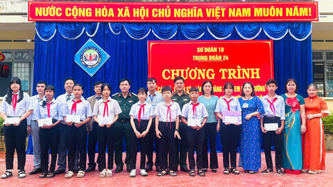 Trung đoàn 24: Trao học bổng “Cán bộ, chiến sĩ Quân đội nâng bước em đến trường” cho học sinh khó khăn vùng biên giới