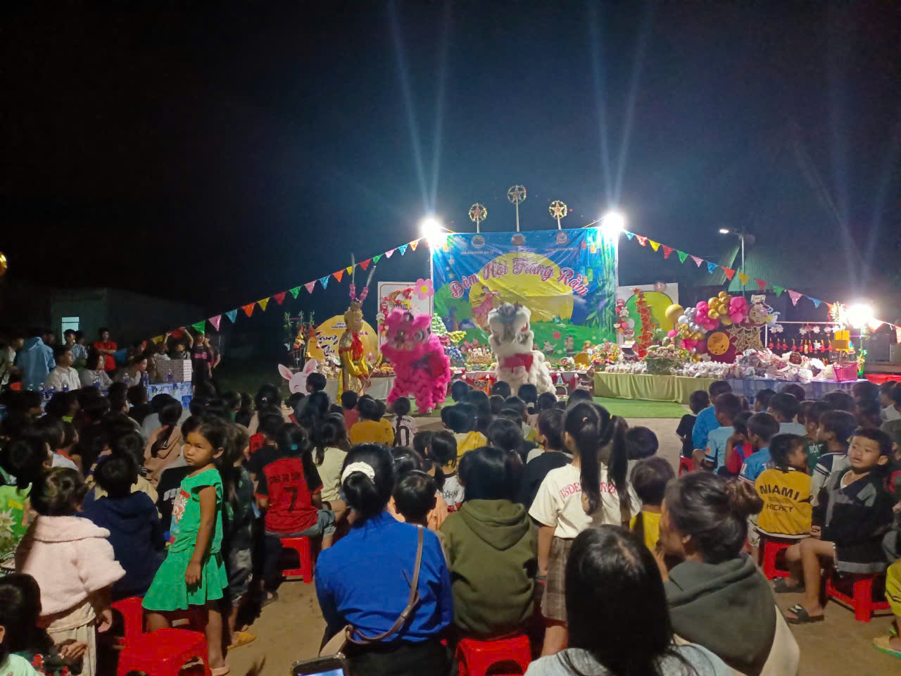 Mở đầu Chương trình “Đêm hội trăng rằm” sôi động với màn múa lân rộn ràng và nghi thức phá cỗ Trung thu. Tiếp đó, các cháu thiếu nhi cùng nhau rước đèn, chơi trò chơi dân gian và thưởng thức nhiều tiết mục văn nghệ, tiểu phẩm tái hiện hình ảnh chị Hằng và chú Cuội. Bầu không khí vui tươi phấn khởi của “Đêm hội trăng rằm” đã mang lại niềm vui trọn vẹn cho các em nhỏ vùng biên giới, qua đó đã góp phần tiếp thêm động lực để các em nỗ lực học tập, rèn luyện, trở thành công dân có ích.