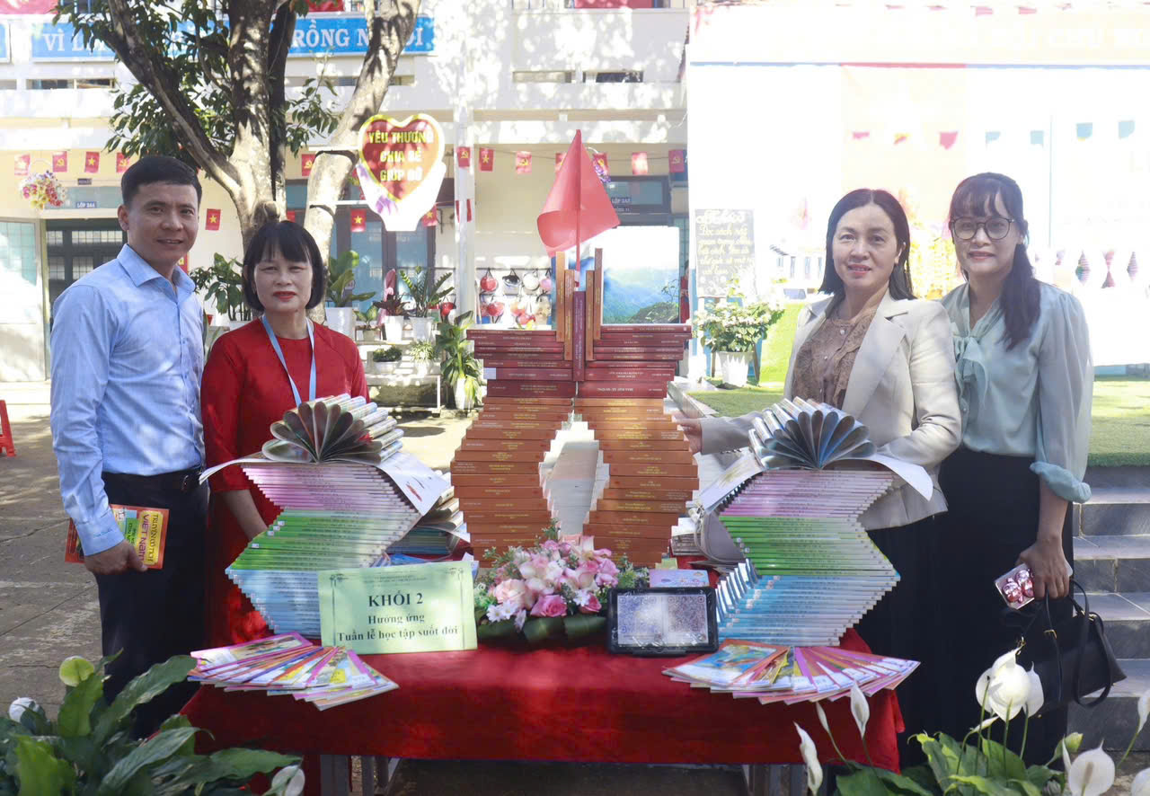 Sau chương trình khai mạc, các đại biểu cùng thăm quan không gian trưng bày sách nghệ thuật do các em học sinh và thầy cô giáo Trường Tiểu học số 1 thị trấn Plei Kần thực hiện.