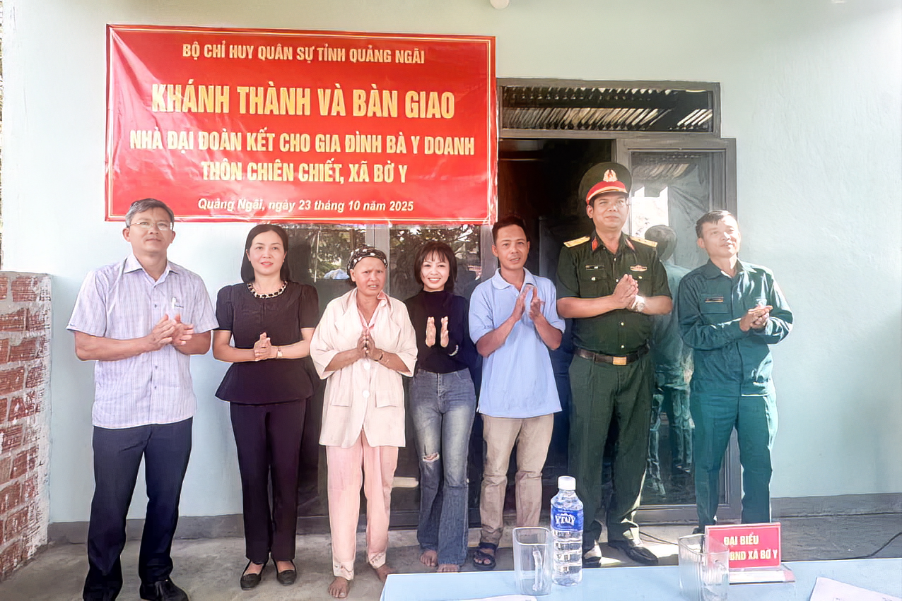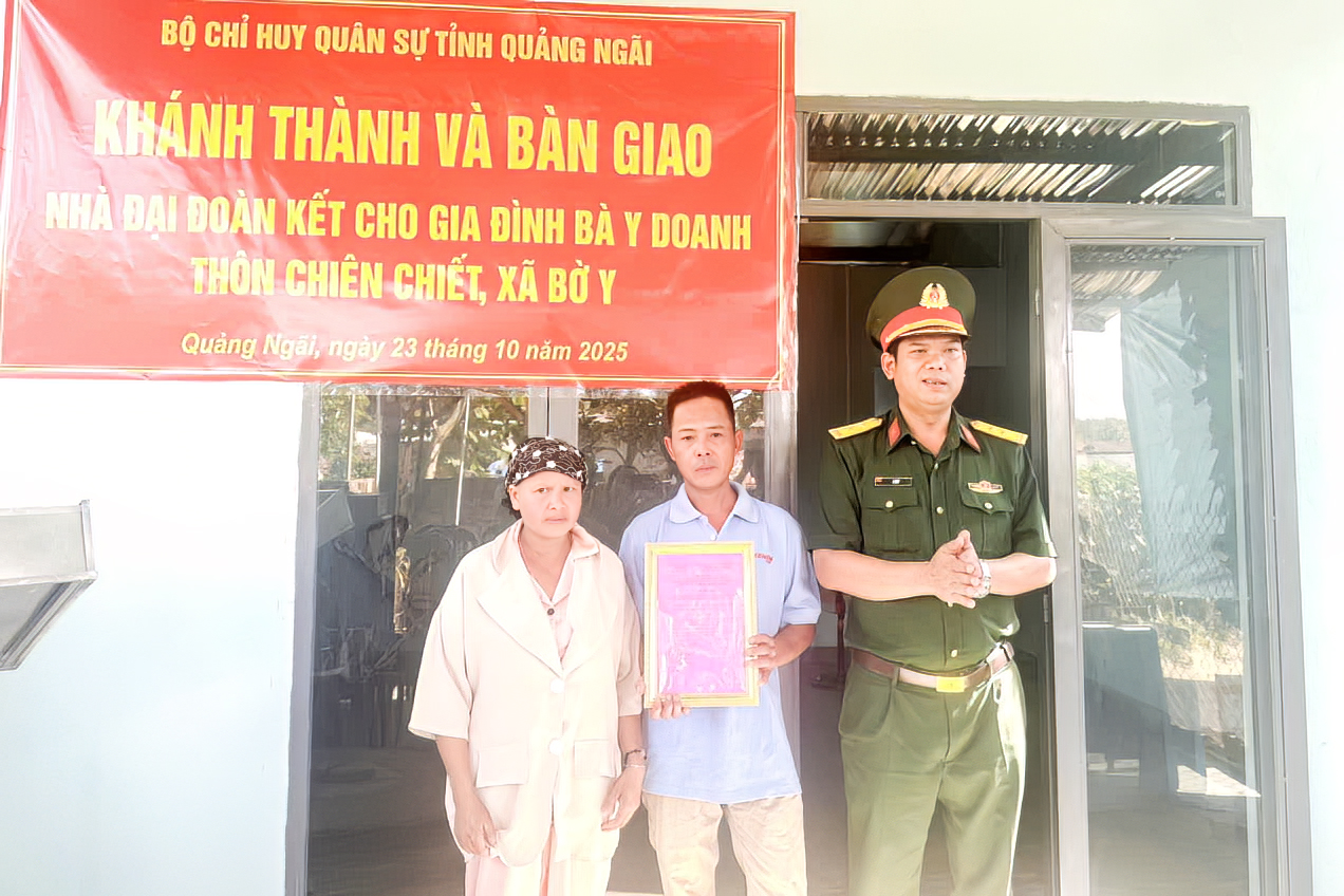 Chiều 23/10, Ban Chỉ huy phòng thủ khu vực 2 - Bờ Y (Bộ Chỉ huy Quân sự tỉnh Quảng Ngãi) tổ chức khánh thành và bàn giao nhà “Đại đoàn kết” cho gia đình bà Y Doanh, thôn Chiên Chiết, xã Bờ Y.