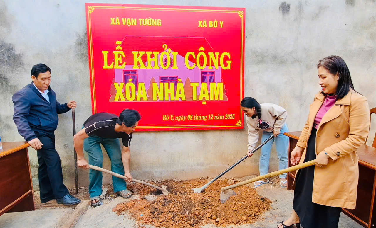 Trước đó, thực hiện chương trình kết nghĩa, phối hợp, xã Vạn Tường trao hỗ trợ xã Bờ Y 06 căn nhà đại đoàn kết với tổng kinh phí 360 triệu đồng. Đây là căn nhà đầu tiên được khởi công xây dựng hỗ trợ hộ gia đình ông Thao Minh Thần, hộ khó khăn về nhà ở tại thôn Đăk Tang với kinh phí 60 triệu đồng. Theo kế hoạch, căn nhà sẽ hoàn thành, bàn giao cho hộ gia đình đưa vào sử dụng trước Tết Nguyên đán năm 2026.