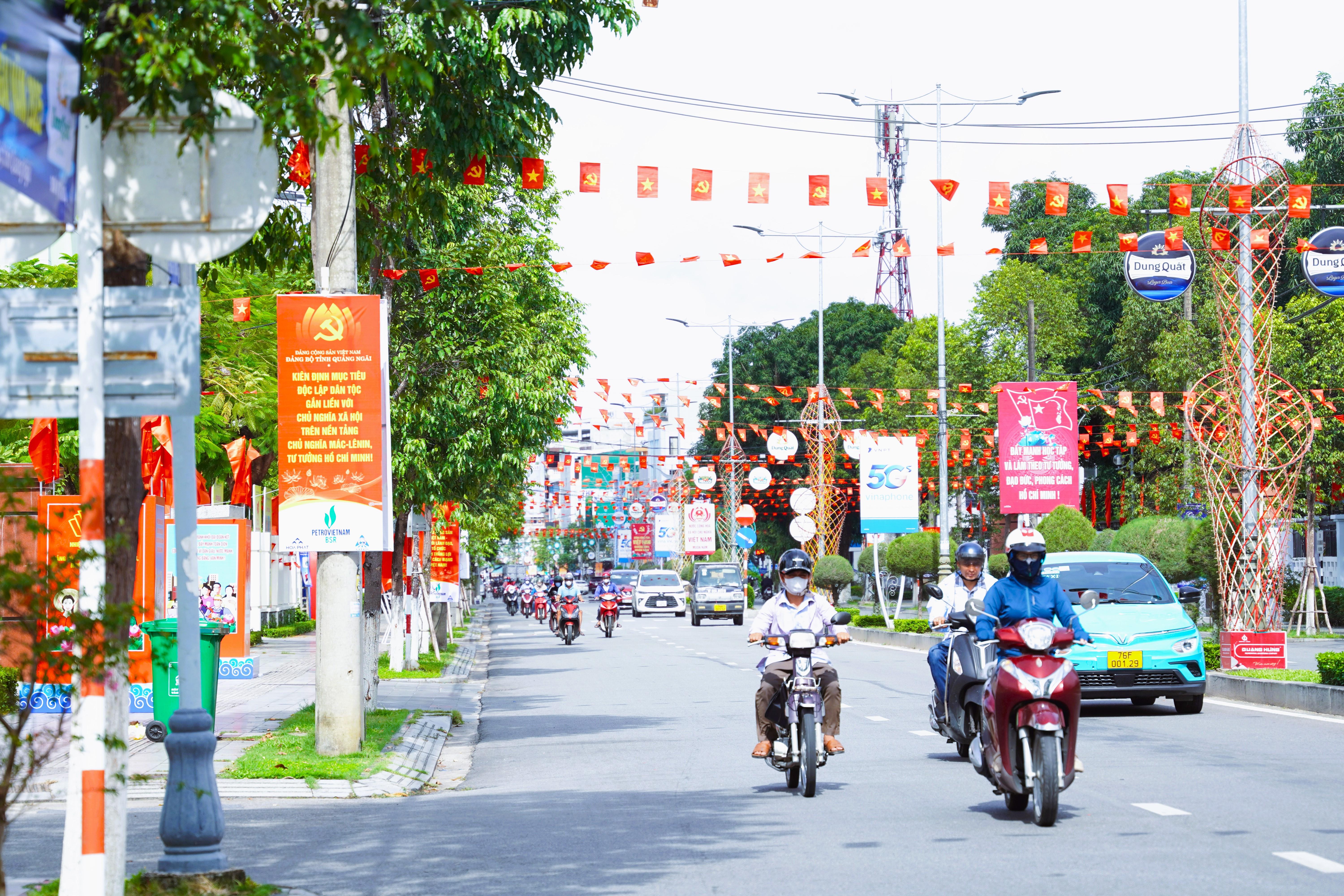 Dọc các tuyến phố của các phường trung tâm Quảng Ngãi từ nhiều ngày nay đã được trang trí cờ, băng rôn, áp phích, pa nô…
