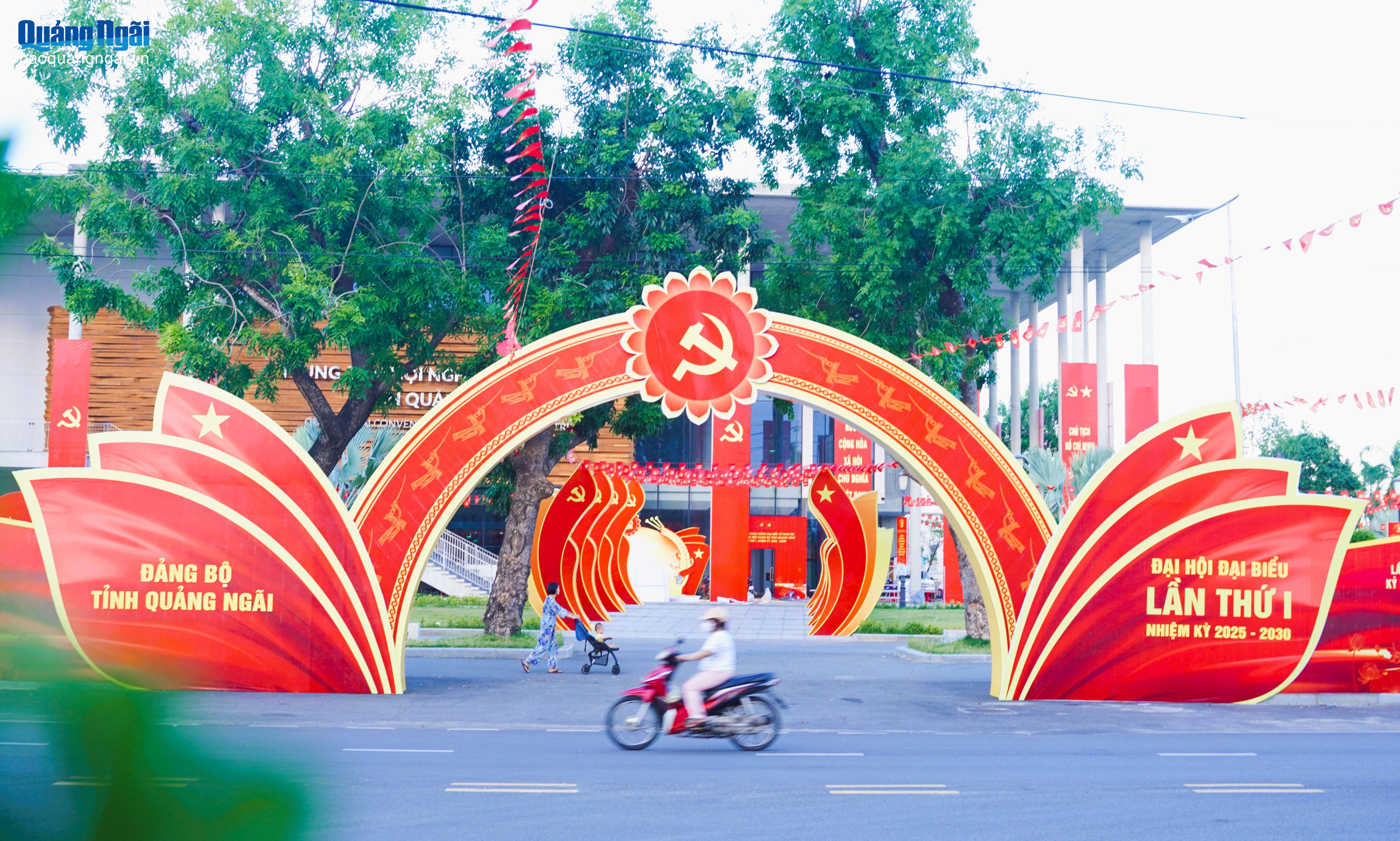Những ngày này, đi khắp các tuyến đường ở Quảng Ngãi, đâu đâu cũng được trang trí rực rỡ với cờ, băng rôn, pa nô, áp phích... chào mừng Đại hội đại biểu Đảng bộ tỉnh lần thứ I, nhiệm kỳ 2025 - 2030.