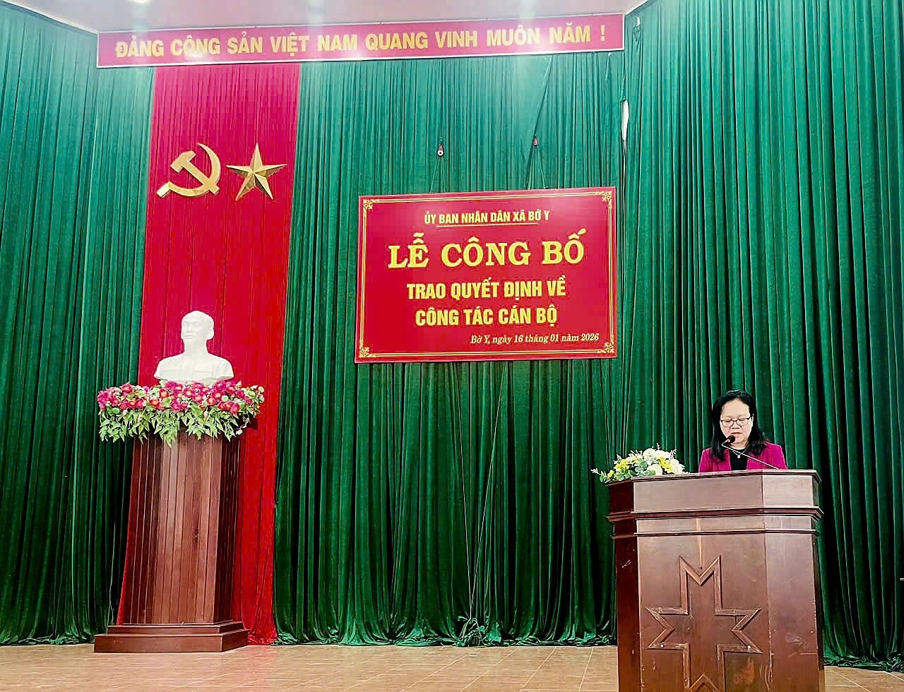 Bên cạnh đó, UBND xã đã công bố Quyết định bổ nhiệm các viên chức Trung tâm Cung ứng Dịch vụ công xã Bờ Y; Quyết định phân công tạm thời phụ trách, điều hành và phụ trách kế toán Trạm Y tế xã Bờ Y, bảo đảm hoạt động của các đơn vị được triển khai kịp thời, thông suốt.